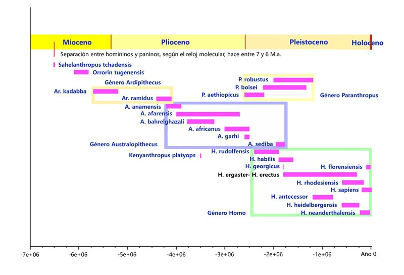 No son Lucy y sus congéneres, incluido el individuo del cuarto metatarsiano, los primeros homínidos después de la bifurcación evolutiva de los otros primates. Algo más de cuatro millones de años tienen los A.anamensis descubiertos en Kenia y Etiopía, pero su esqueleto aún no se conoce bien, explican los científicos en Science. Algo más antiguos, en torno a 4,4 millones de años, tienen los Ardipithecus ramidus, de Etiopía, que son los ancestros humanos más antiguos que se conocen hasta ahora con un esqueleto bien representado en el registro fósil, como dicen los paleontólogos. Pero los ardipitecos, descubiertos por Tim White, contrincante declarado de Johanson en la carrera por estudiar los homínidos más antiguos y más humanos, sería sólo un bípedo a tiempo parcial, de transición, con muchos rasgos aún de los monos que se desplazan por los árboles, incluido el dedo gordo largo y móvil adecuado para sujetarse.