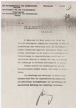 La decisión nazi de llevar a la práctica el genocidio fue tomada entre finales del verano y principios del otoño de 1941 y el programa genocida alcanzó su punto culminante en la primavera de 1942 —desde finales de 1942, las víctimas eran transportadas regularmente en trenes de carga, especialmente conducidos a campos de exterminio donde, si sobrevivían al viaje, la mayoría eran asesinados sistemáticamente en las camaras de gas.
