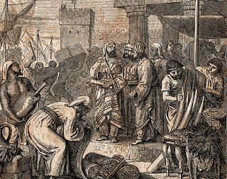 Despues de haber sido sometida por los asirios primero, después de haber sido conquistada tras un asedio de 13 años por Nabucodonosor después la ciudad de Tiro, la gran dueña del Mediterraneo, entra en decadencia que lo resume Ezequiel, 26, 21-26:
