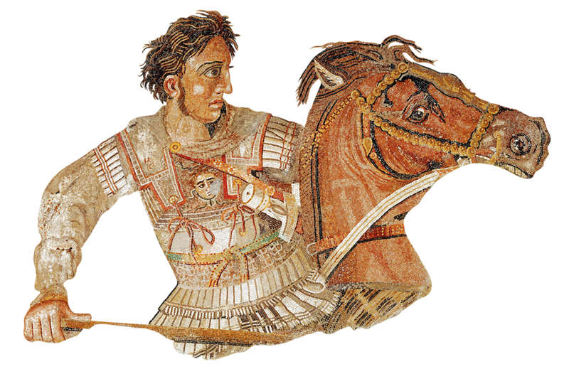 Alejandro Magno en un detalle del Mosaico de Issos. Museo Arqueológico Nacional, Nápoles. En Halicarnaso, Alejandro vio el mausoleo del soberano de Caria. Scala, Firenze