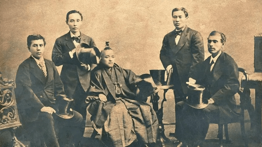 Fotografía de los miembros deal emabajada Iwakura en San Francisco. Wikimedia Commons