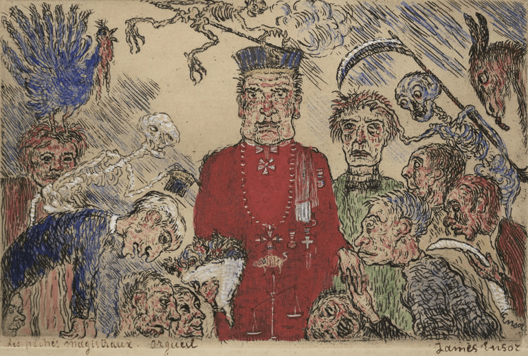 En sus últimas décadas de vida, Ensor parece más interesado en el trabajo sobre imprenta, con los aguafuertes, en un trabajo mar minucioso, que supervisa a pie de la imprenta, como décadas más tarde hacen Picasso o Arroyo. Como hace Rembrandt tal vez la única influencia clara en su carrera: