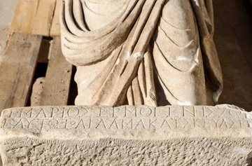 Quizás de un funcionario o miembro de alto rango de la comunidad de Odessos, enviado por el estado central. Para comprender cuál es exactamente el papel público del retratado es crucial la interpretación de la propia parte inferior de la inscripción y la investigación de los repertorios epigráficos de la zona. Los primeros estudios apuntan a que se trata de un hombre llamado Gaius Marius Hermogenes.