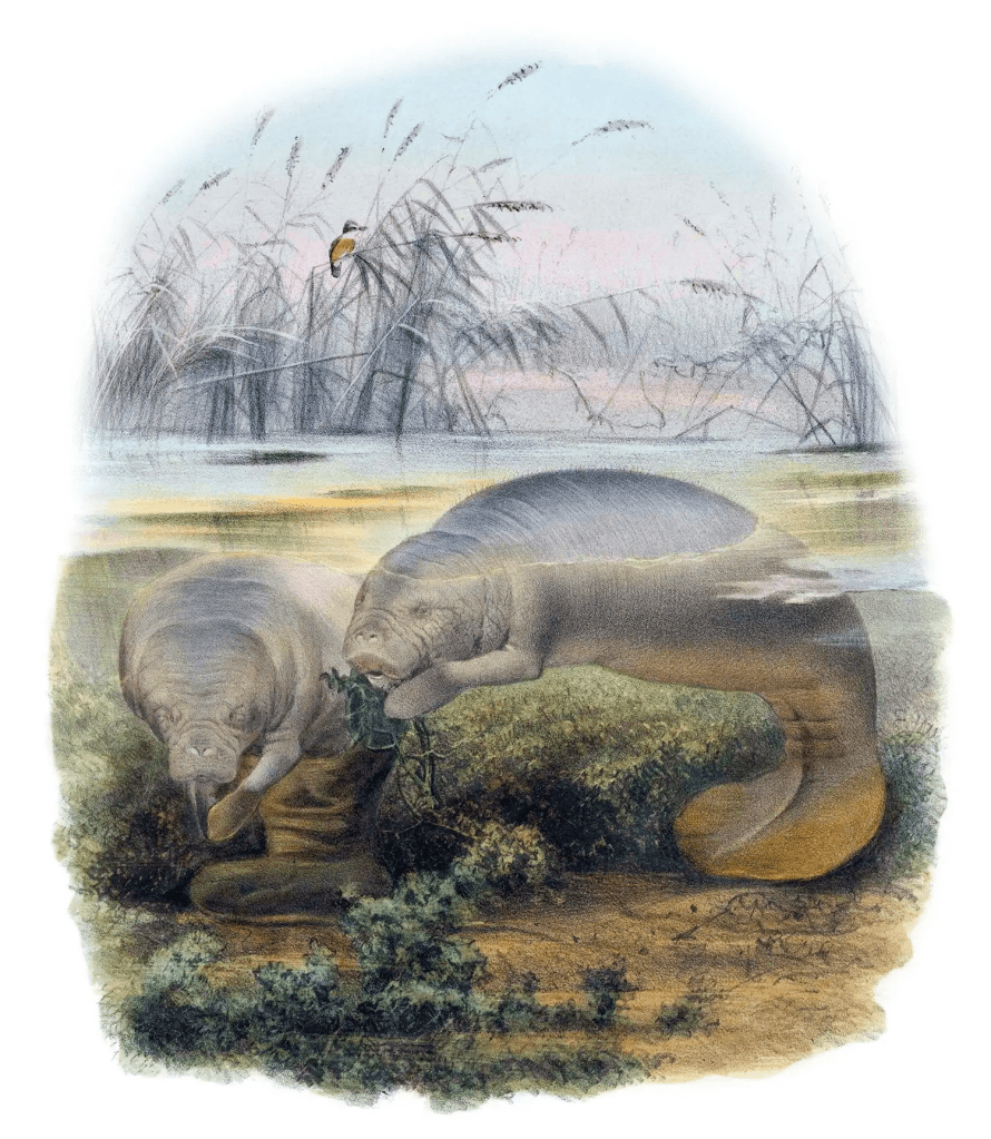 El día pasado, cuando el Almirante iba al Río del Oro, dijo que vio tres sirenas que salieron bien alto de la mar, pero no eran tan hermosas como las pintan, que en alguna manera tenían forma de hombre en la cara. Dijo que otras veces vio algunas en Guinea, en la costa Manegueta. Diario, 9-I-1493.