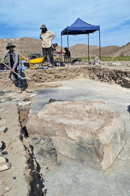 La zona de excavación del yacimiento arqueológico donde se encontraron los restos de una antigua iglesia en Armenia. Crédito: AGAP