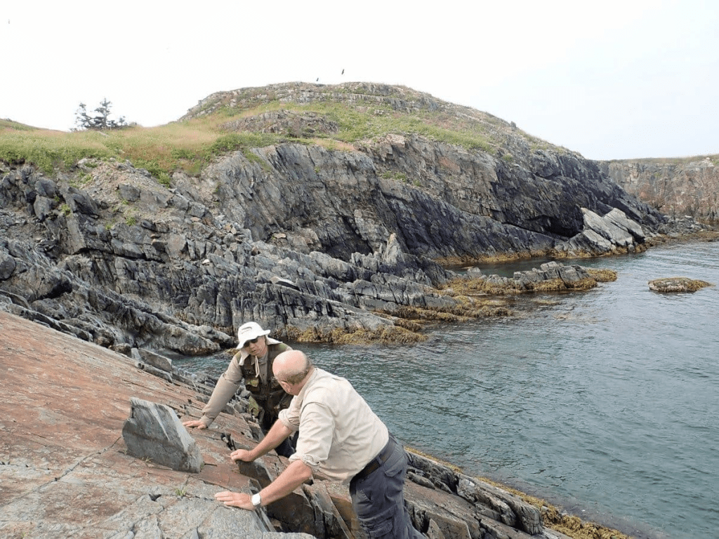 El geobiólogo Shuhai Xiao (a la izquierda) y un colega sobre el terreno en Canadá. Crédito: Danielle Fitzgerald / Virginia Tech