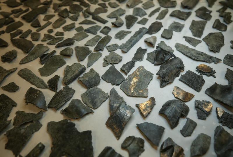 Los fragmentos de bronce encontrados posiblemente fueron desmenuzados para fundirlos y almacenarlos a granel.
