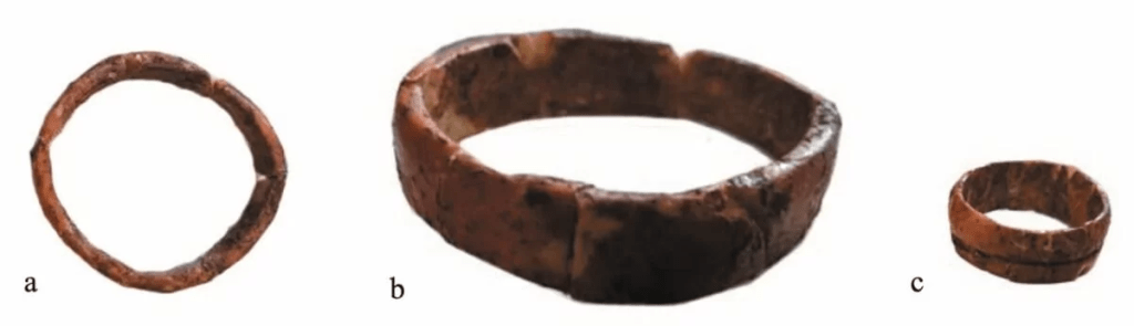 Anillos de hueso seleccionados de la tumba de la chamana. Crédito: H. May