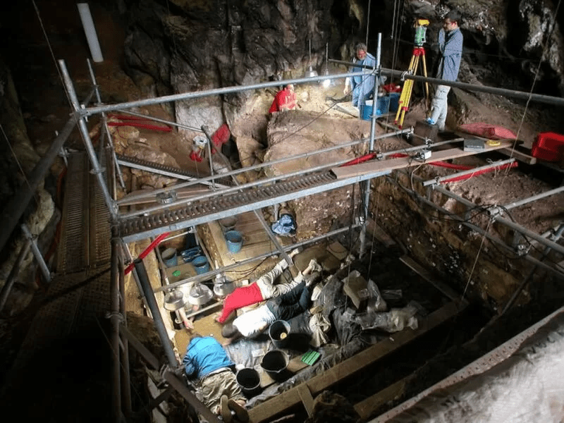 Excavaciones en la cueva de El Mirón, Cantabria. Crédito: Universidad de Cantabria