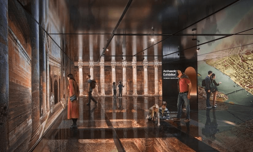 Proyecto arquitectónico para exponer los restos de la basílica romana recién descubierta en Londres. Crédito: Woods Bagot