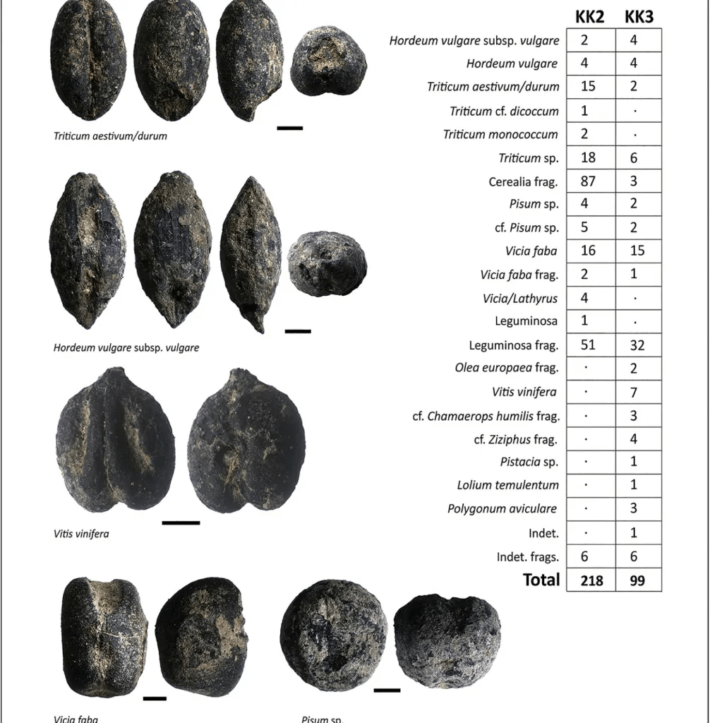 Los restos botánicos extraídos mediante flotación indican que estas poblaciones practicaban una economía agrícola diversificada. Durante las fases KK2 y KK3, se cultivaron variedades de cebada, trigo, leguminosas. En la última etapa, incluso se introdujeron especies frutales como la vid y el olivo.