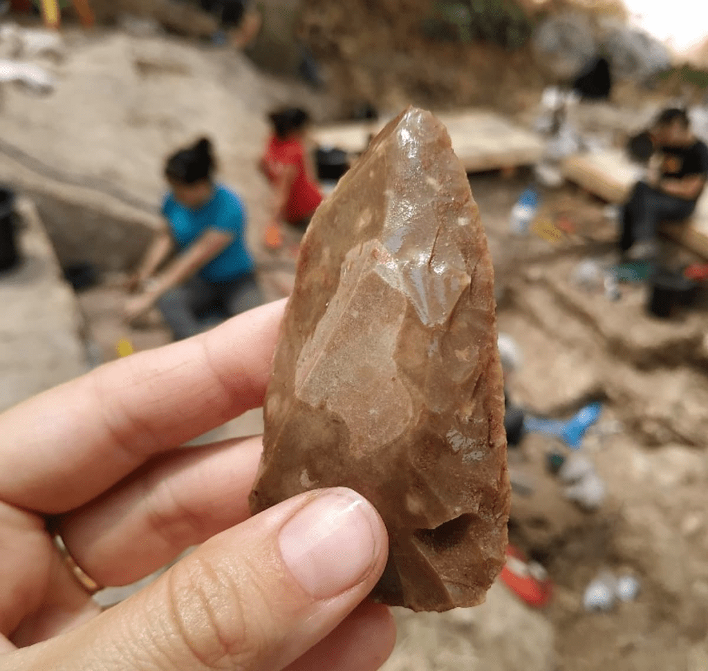 Artefacto lítico de la cueva de Tinshemet fabricado con tecnología compartida por Homo sapiens y neandertales. Crédito: Marion Prévost