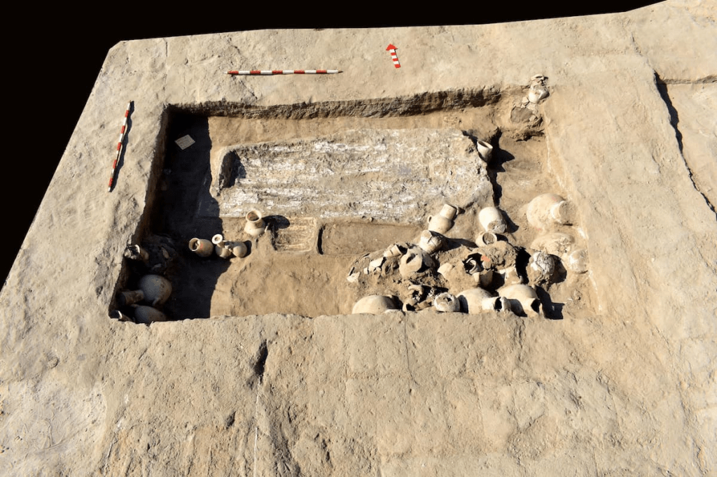El equipo de arqueólogos halló la tumba del comandante militar, construida en adobe y compuesta por una cámara funeraria principal y tres salas anexas, cuyos muros están recubiertos con una capa de mortero blanco. Entre los objetos recuperados en el interior se encuentran puntas de flecha de bronce y los restos de un cetro, indicios que sugieren que el difunto ostentaba un cargo de gran relevancia en el ámbito militar.