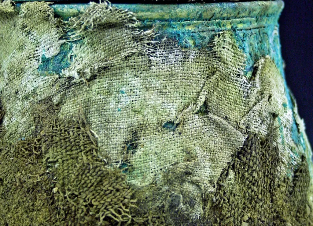 El tesoro de Galloway -la colección más rica de la era vikinga jamás localizada en Gran Bretaña o Irlanda- incluye depósitos divididos en varios grupos. El nivel inferior del tesoro, que se enterró primero, contiene el material más valioso, y un depósito más pequeño situado en la parte superior se utilizó como señuelo. Los objetos con inscripciones rúnicas proceden de la plata de la sección inferior, que incluía 15 lingotes de plata y 31 anillos de brazo metidos en una bolsa de cuero.