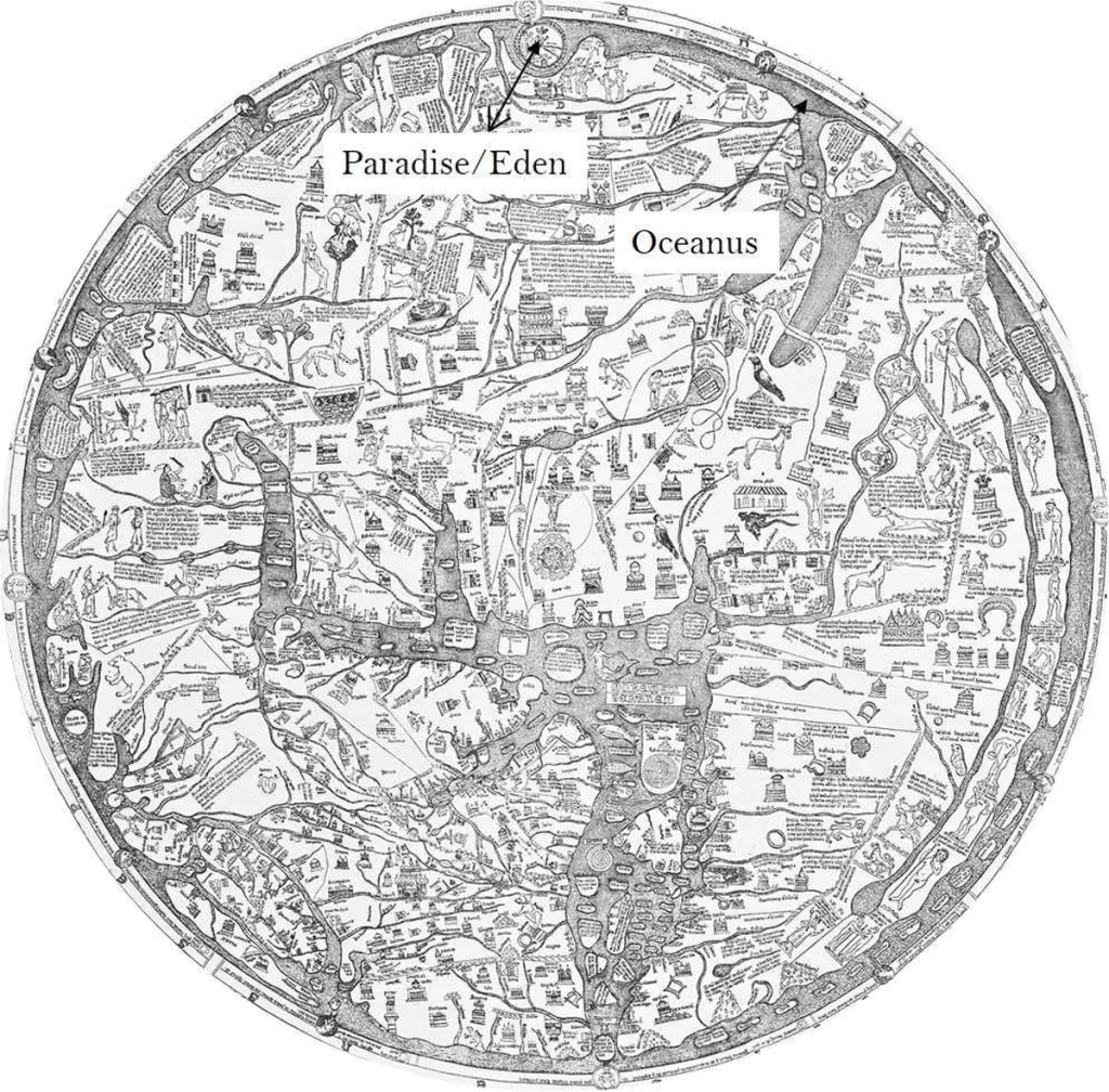 The Hereford mappa mundi, a map of the world with Jerusalem at its centre. Credit: Wikipedia