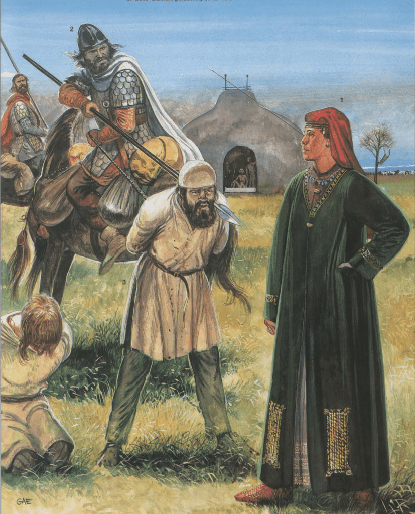 Los alanos, un grupo nómada con raíces en los antiguos pueblos iranios, fueron reconocidos como hábiles jinetes que se desplazaron a través de las estepas euroasiáticas, dejando su huella desde el norte de África hasta Europa occidental. Su tradición de adornar minuciosamente a sus caballos se evidencia claramente en los arneses enjoyados y otros accesorios equinos encontrados en la tumba, algunos de ellos adornados con llamativas turmalinas verdes engastadas en oro.