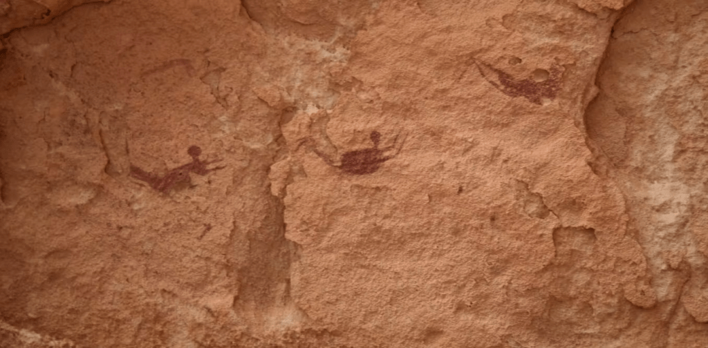 Las imágenes, al principio, se interpretaron como representaciones de almas flotando en un océano ancestral, según las creencias egipcias antiguas. Pero, junto a estos dibujos, también había jirafas y antílopes, lo que permitió proponer otra idea: que la región había sido un oasis en el que los humanos disfrutaban de chapuzones y convivían con exóticos animales.