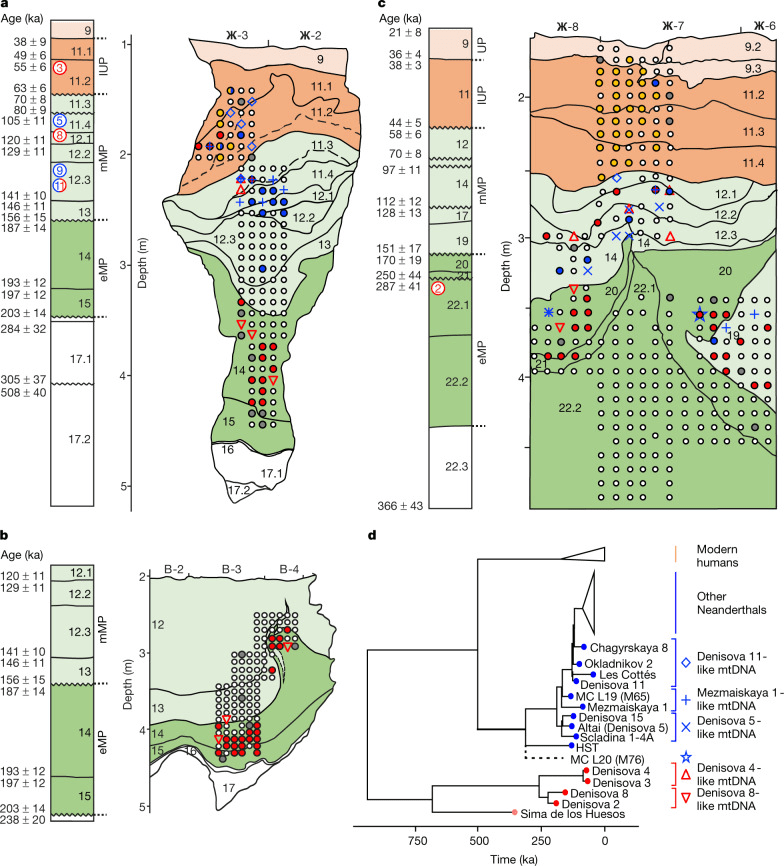 El estudio también reveló la existencia de dos poblaciones denisovanas distintas: una más antigua (relacionada con los fósiles Denisova 2 y 8) que desapareció hace unos 150.000 años, y una más reciente (representada por Denisova 3 y 4) que habitó la cueva hasta hace unos 55.000 años.