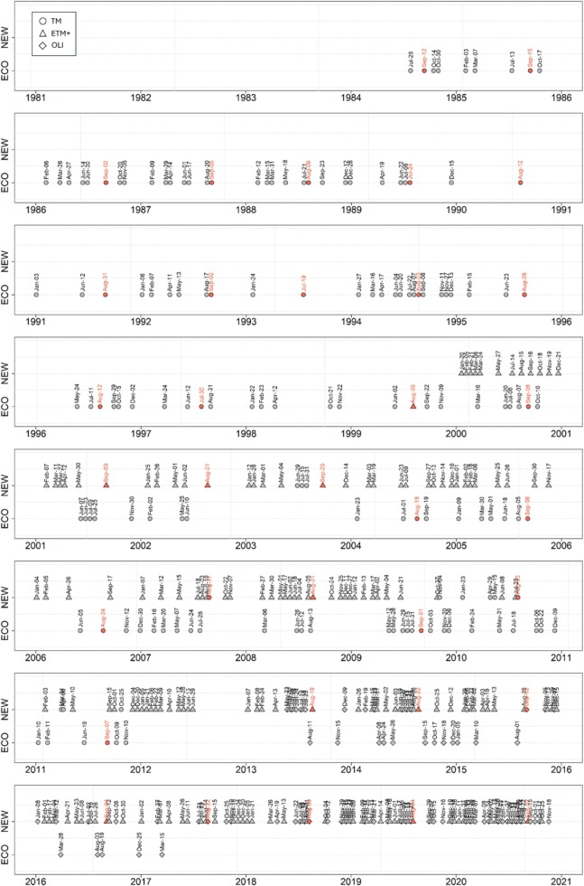 Para ello utilizan el Índice de Vegetación de Diferencia Normalizada (NDVI), una herramienta que permite evaluar la salud y densidad de la vegetación a partir de imágenes captadas por satélite entre 1984 y 2020, algunas de ellas procesadas en el marco del proyecto ECOPOTENTIAL.