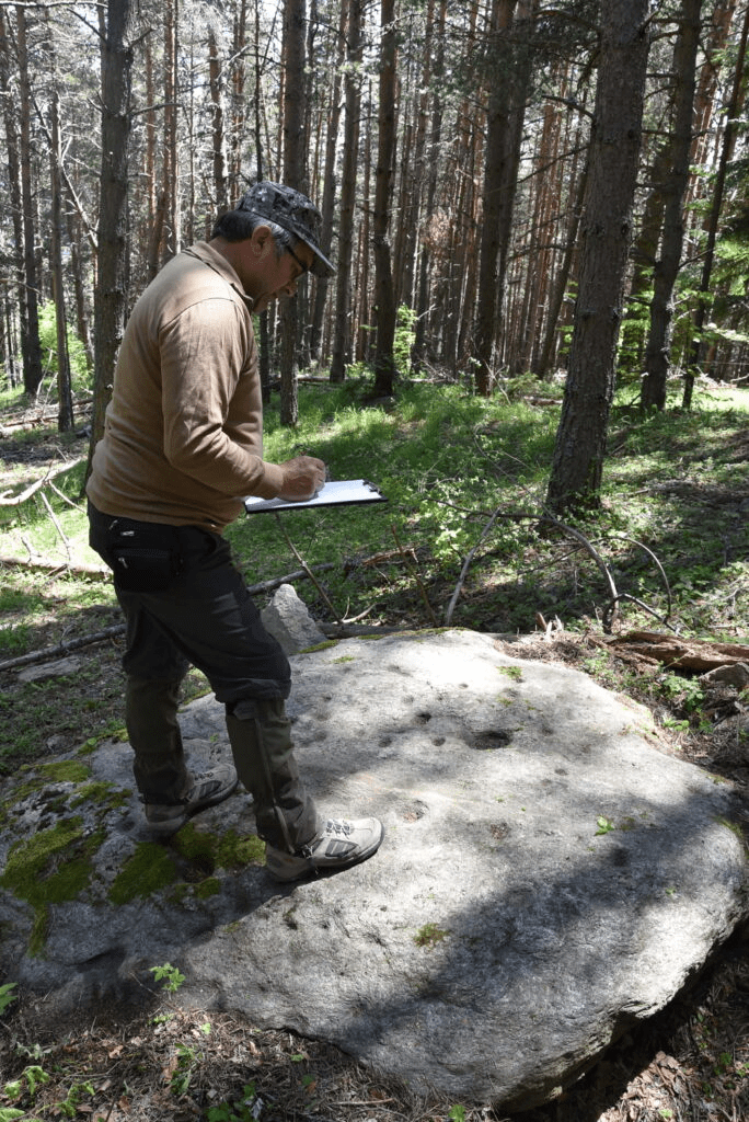 The stone’s surface features 56 meticulously carved conical holes of various diameters—24 in the northern half and 32 in the southern—representing stars of different magnitudes. Photos courtesy of Georgi Georgiev.