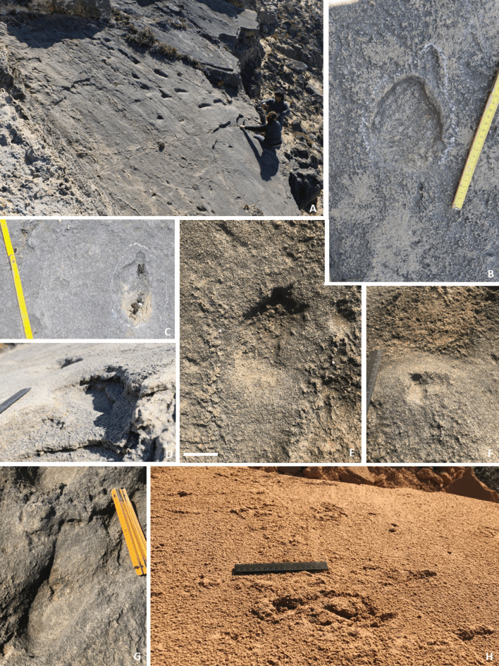 Las huellas se conservaron en areniscas fosilizadas y fueron encontradas en dos lugares distintos. En Monte Clérigo los investigadores identificaron varias pisadas que pertenecían a al menos tres individuos: un adulto, un niño de entre 7 y 9 años y un niño pequeño de menos de 2 años.