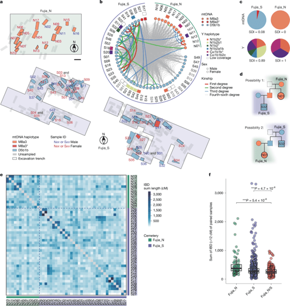 Los 14 individuos del cementerio norte (Fujia_N) portaban el haplogrupo mitocondrial M8a3, mientras que 44 de los 46 individuos del cementerio sur (Fujia_S) portaban el haplogrupo D5b1b. Curiosamente, el análisis del cromosoma Y, que rastrea el linaje paterno, mostró una alta diversidad entre los varones, lo que indica que hombres de diversos orígenes se habían casado con miembros de estos clanes maternos.