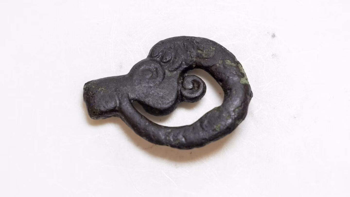 El entierro de la noticia incluye un cinturón ornamentado, una hebilla con cabeza de carnero, un espejo de bronce y elementos de arneses para caballos, lo que revela el estatus de élite del noble guerrero escita.