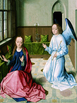 Escuela de Dirk Bouts. Anunciación de la Virgen, 1470-1480. Fundación Príncipes Czartoryski, depósito en el Museo Nacional de Cracovia