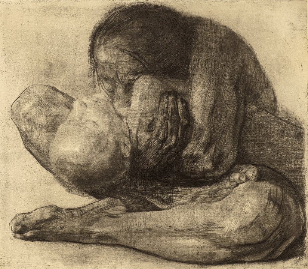 Mujer con nino muerto de 1903, aguafuerte de Kathe Kollwitz. —Museo de Kathe Koll