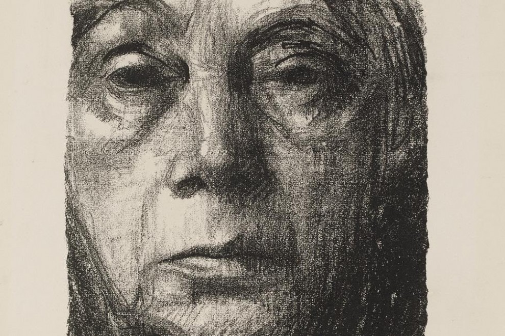 Litografía que representa un autorretrato de Käthe Kollwitz, de 1934. —Museo Käthe Kollwitz