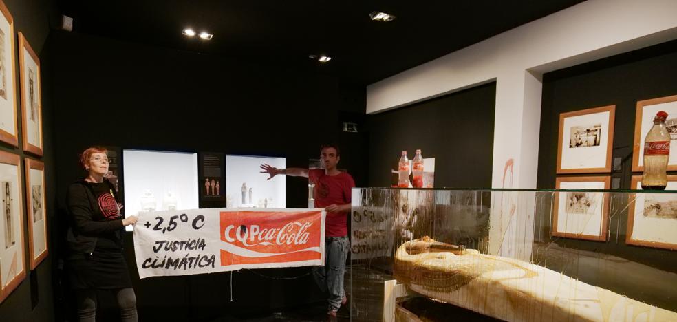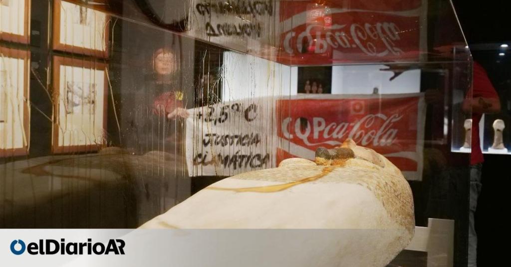 Los activistas del grupo Futuro Vegetal han lanzado este domingo sangre y petróleo falsos a la vitrina de una réplica de momia faraónica del Museo Egipcio de Barcelona para alertar sobre la emergencia climática. Dicen en su perfil de Twiter: