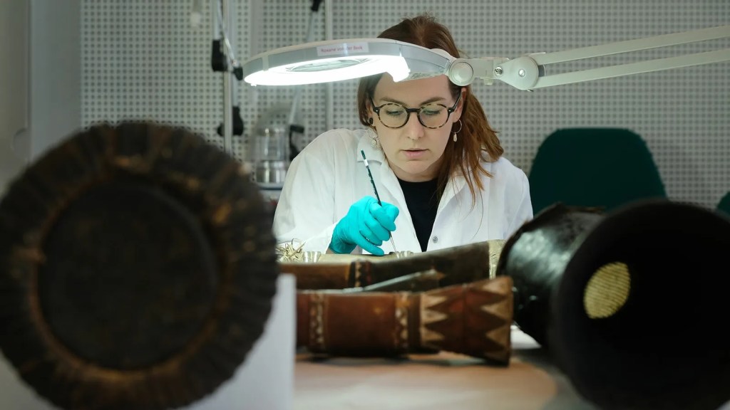 Decenas de expertos de los países de procedencia de los objetos llevan años ayudando a diseñar las salas y a escribir la información que se da a los visitantes. Algunos estuvieron presentes en el acto de apertura. “Ver los objetos por fin en la sala hizo que se me saltaran las lágrimas”, contó Wynema Morris, miembro de la tribu nativa americana Omaha y profesora de la Universidad india de Nebraska (EE UU).