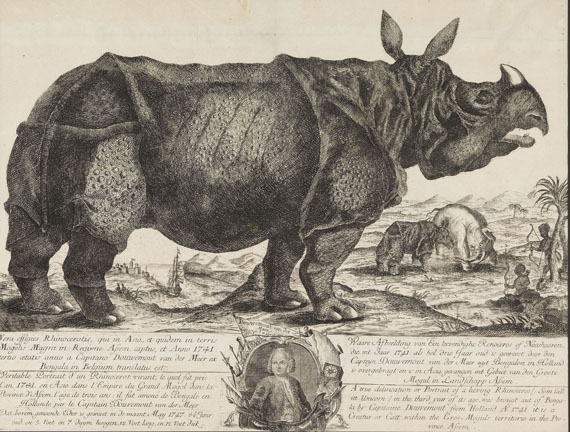 Llegó a la ciudad holandesa de Ámsterdam en 1741 y atrajo a multitud de curiosos que no habían visto nunca a este mamífero vivo y solo conocían un grabado del artista alemán Alber Durer, fechado en 1515.