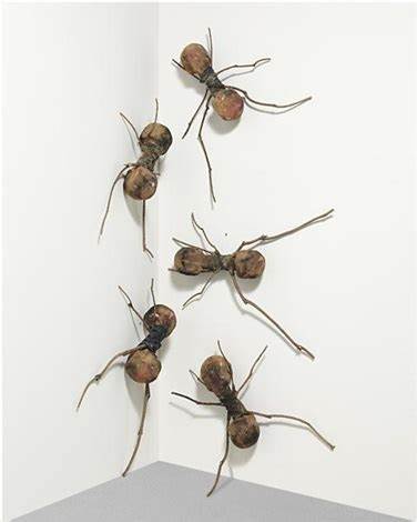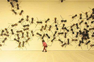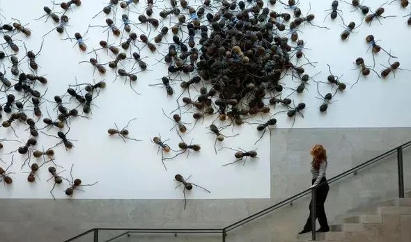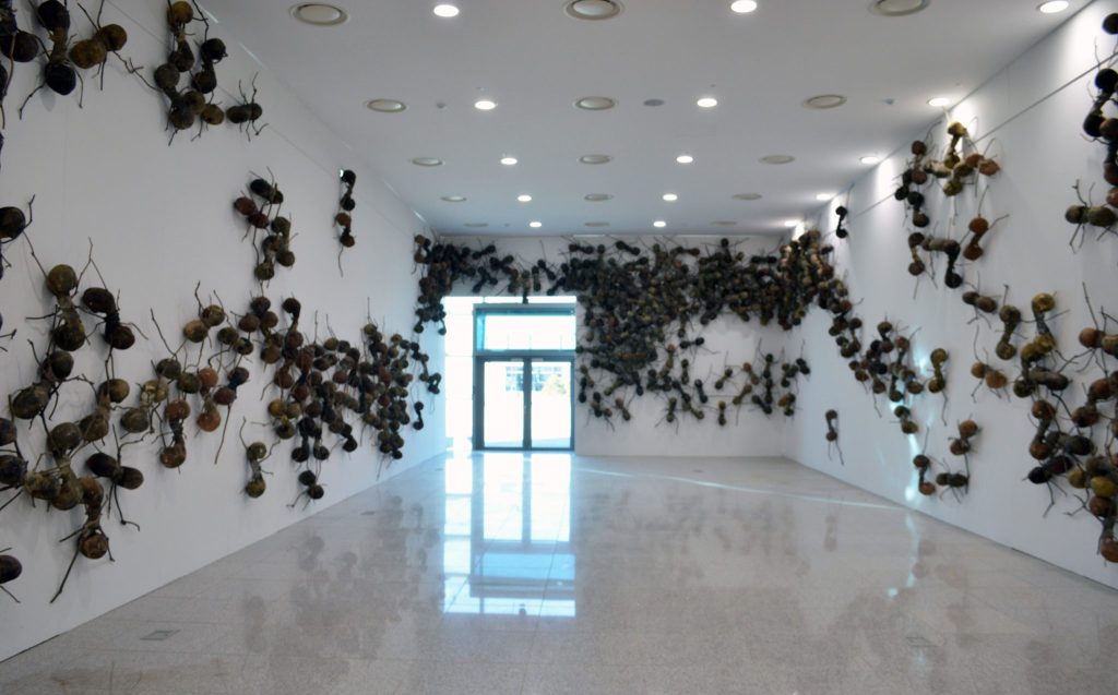 La instalación de Gomezbarros, que puede ser vista también como una plaga, prepara para la visita a las salas con las obras dedicadas a los insectos, dispuestas sobre un fondo negro.