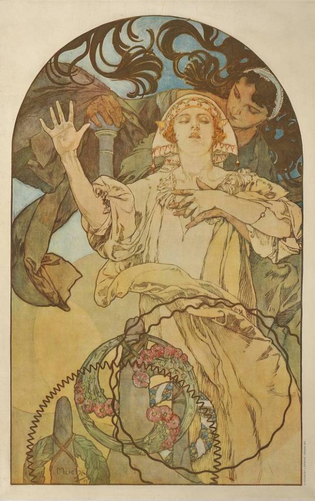 En París, los carteles, como forma que mezclaba la publicidad y la expresión artística, habían tomado buena parte del espacio público generando una nueva cultura visual, pero a la célebre actriz Sarah Bernard no le gustaban los diseños para los anuncios de su nueva obra Gismonda.