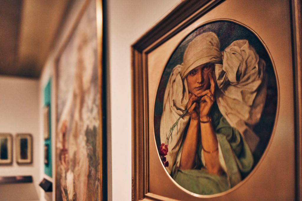 En la muestra se pueden ver las obras de Mucha, póster o lienzo, retratos de la familia realizados por el propio artista, fotografías, escritos e incluso joyas familiares diseñadas por Alphonse.