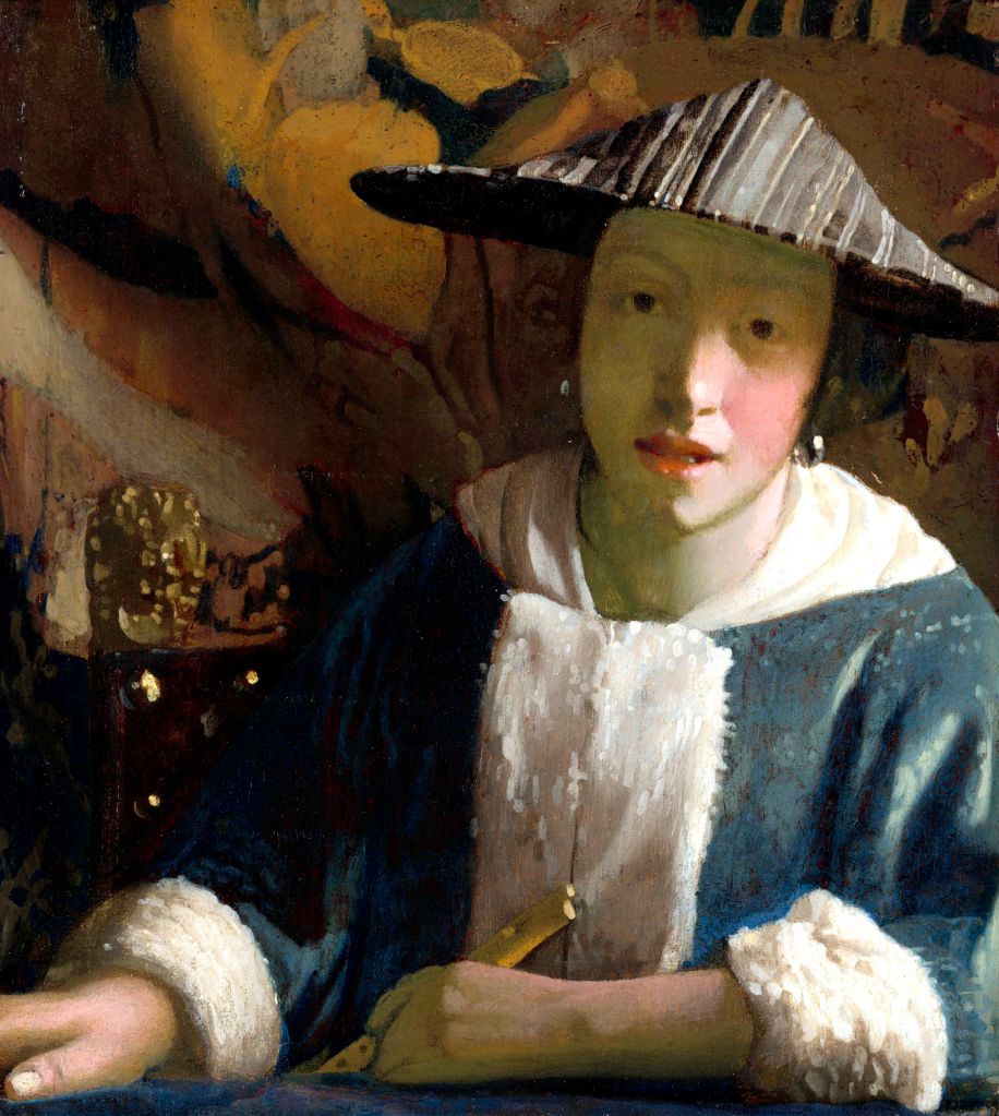 Girl with a flute (1669) es uno de los cuatro cuadros de Vermeer o atribuidos a él que la National Gallery of Art tiene en sus manos, junto con Woman holding a balance (1664), A lady writing (1665) y Girl with the red hat (1666/1667).