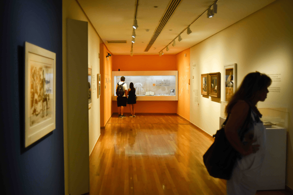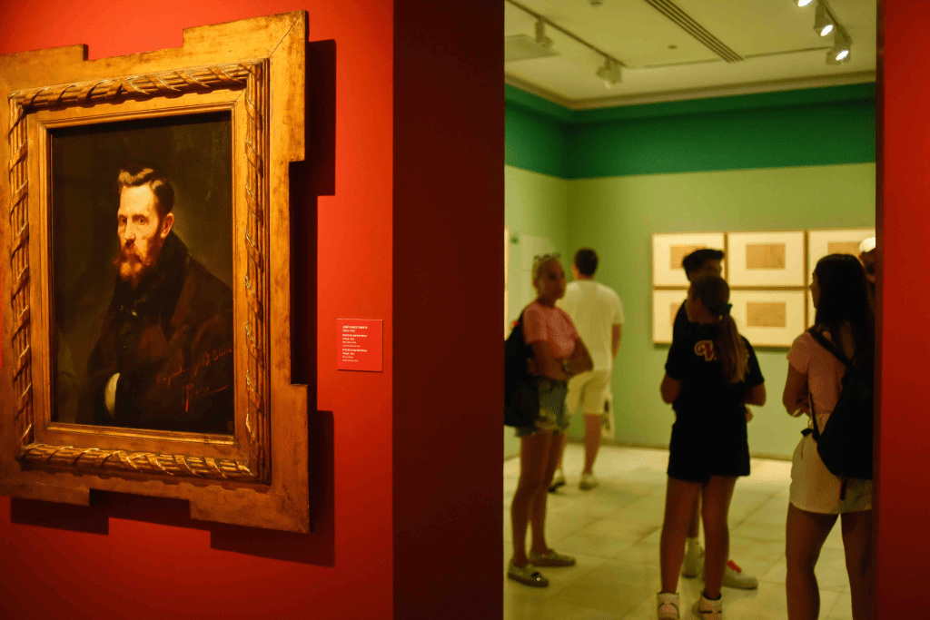 Copias e interpretaciones de obras de grandes maestros españoles, escenas costumbristas, retratos, paisajes y motivos religiosos se mezclan en las salas del museo con algunos bocetos del artista y fotografías de la época.