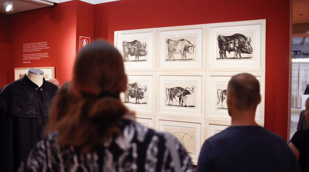 En la muestra están presentes, entre otras, sus interpretaciones de Las Meninas, La fragua de Vulcano, Las hilanderas o La Trinidad.