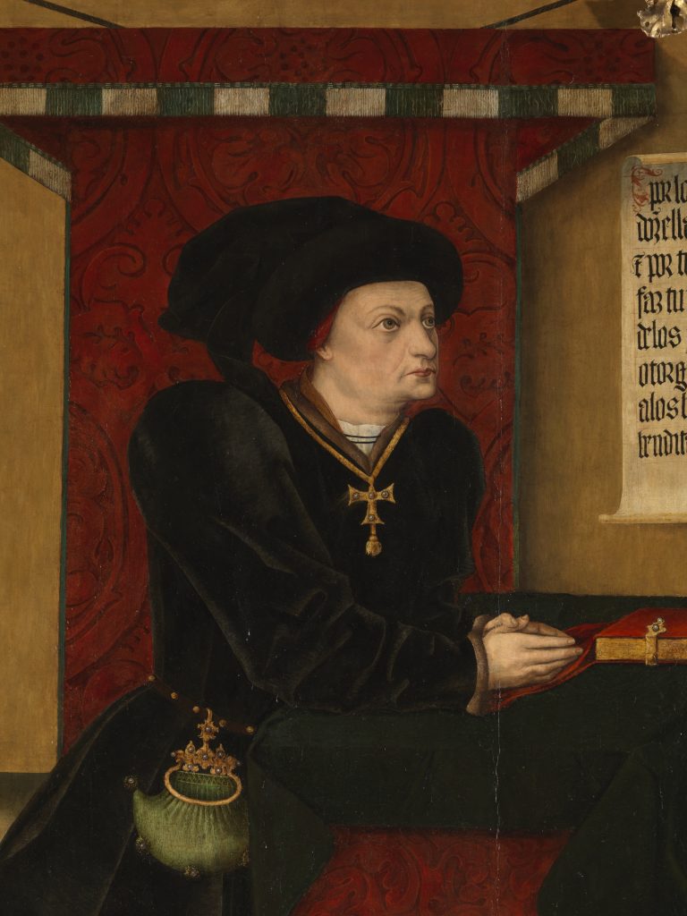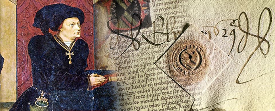 La exposición reúne las mejores ediciones de su biblioteca y una selección de obras que encargó pintar a Jorge Inglés como San Jorge y el Dragón y el retablo Los Gozos de Santa María.