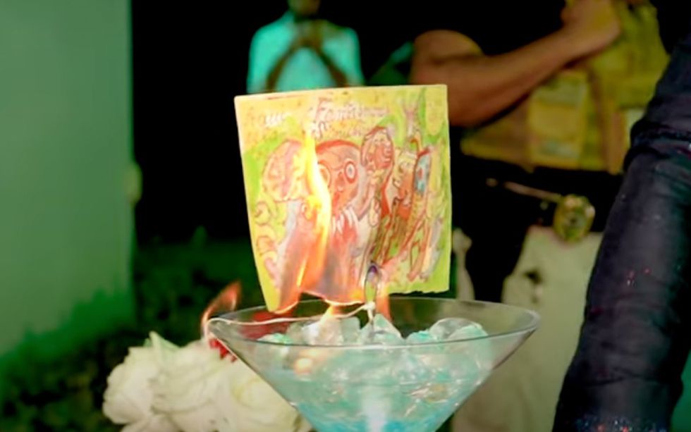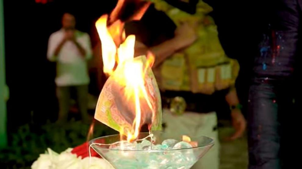 Mobarak sonríe mientras el dibujo arde en una fiesta en Miami (Foto: YouTube)