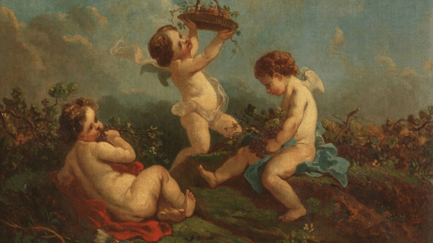 Amorcillos vendimiando’, de François Boucher (copia) Siglo XVIII. Procedencia: adscrita al Museo del Prado, procedente de la Comisaría General del Patrimonio Artístico Nacional, 1942.