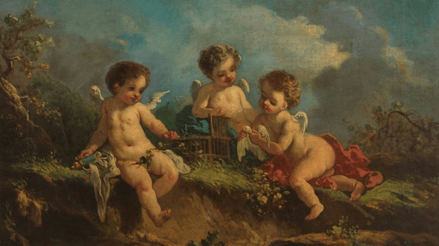 Amorcillos jugando con un pichón’, de François Boucher (copia) Siglo XVIII. Procedencia: adscrita al Museo del Prado, procedente de la Comisaría General del Patrimonio Artístico Nacional, 1942.