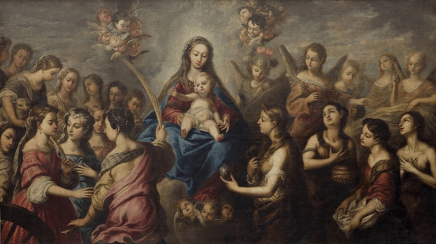 Pedro Atanasio Bocanegra. La Virgen con santos. Siglo XVII. Óleo sobre lienzo, 186 x 332 cm