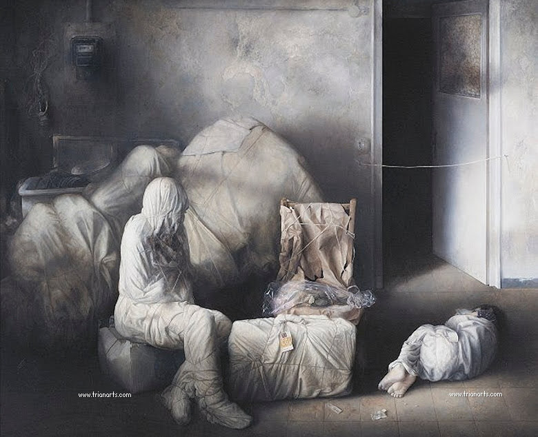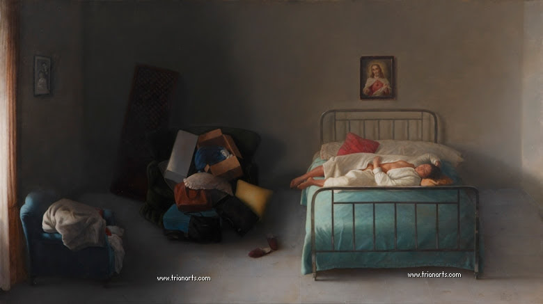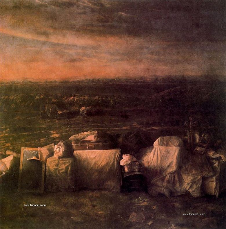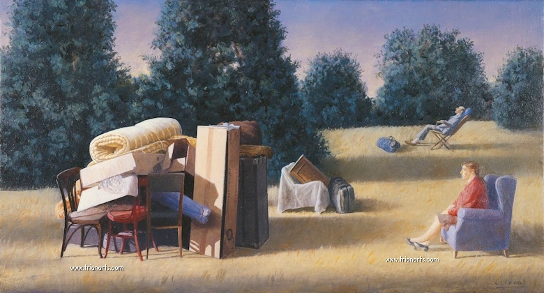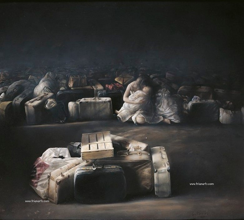 Además de la tecnológica, también le interesan otras realidades, sobre todos las vinculadas con el viaje, ya sea el viaje turístico, los viajes al espacio exterior (yo iba para astronauta pero me quede en pintor) o los viajes migratorios, que ofrecen otra gravedad y otro dramatismo a sus obras.