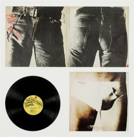 El encuentro entre Warhol y Jagger, sella el arte de tapa de Sticky Fingers, uno de los mejores discos de los Stones editado en 1971.