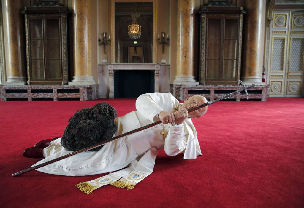 En 2014, además de maletas, metía en un contenedor de basura un retrato del rey Juan Carlos I (junto con algunas maletas, claro), adelantándose, de alguna manera, al gran deterioro de su imagen pública.