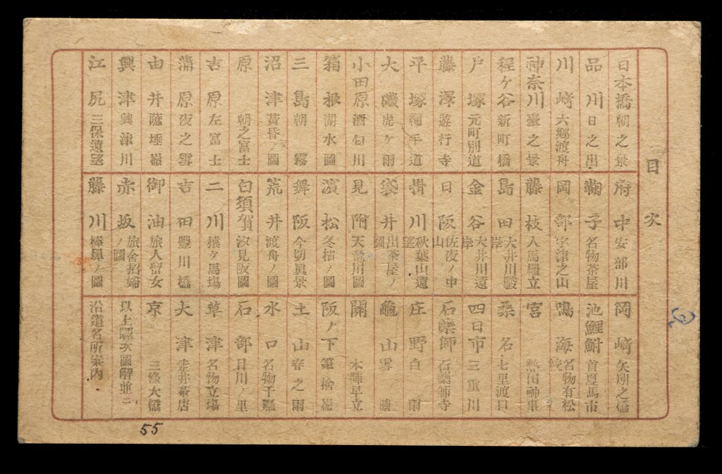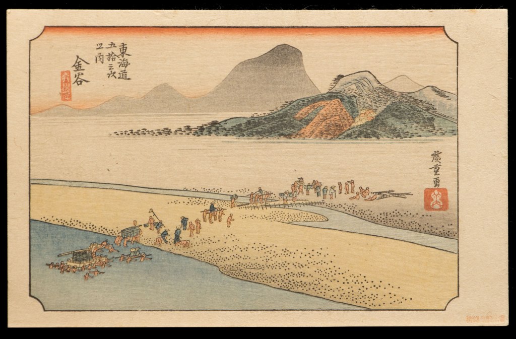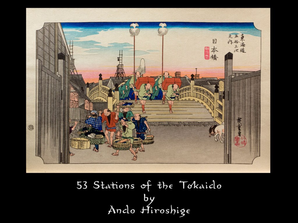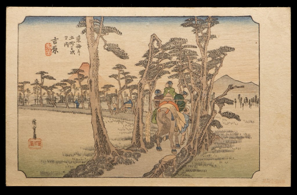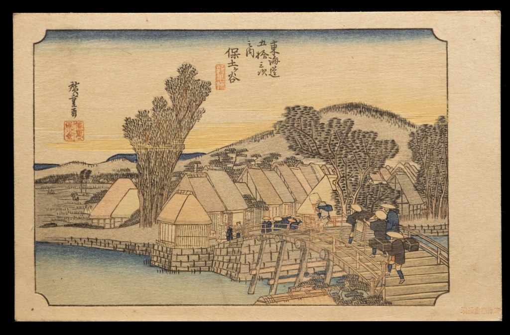 Hiroshige recorre la ruta en 1832 y los bocetos que toma en su trayecto de ida y vuelta le ayudan a crear 55 estampas (una para cada una de las shukubas, y dos más para el comienzo y final del recorrido).