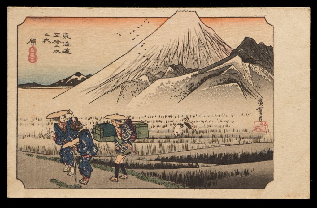 Uno de los mayores testimonios de esta efervescencia por transitar los caminos y aventurarse al viaje, ahora que las restricciones del férreo gobierno de la familia Tokugawa acababa tras más de dos siglos, está en la serie de grabados Las cincuenta y tres etapas de la ruta del Tokaido (hacia 1832- 1834) del maestro japonés Ando Hiroshige (Edo, 1797- 1858).