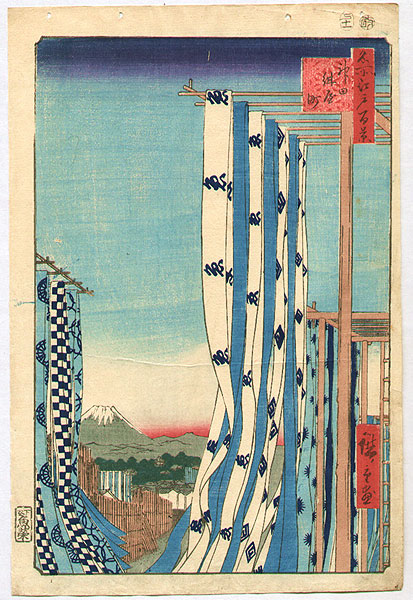 Sus más conocidos dibujos son los que hace del monte Fuji y de Edo, la actual Tokio, en los que capta la atmósfera de la ciudad, con escenas de la vida cotidiana de la capital antes de ser transformada en el período Meiji, que va de 1868 a 1912.